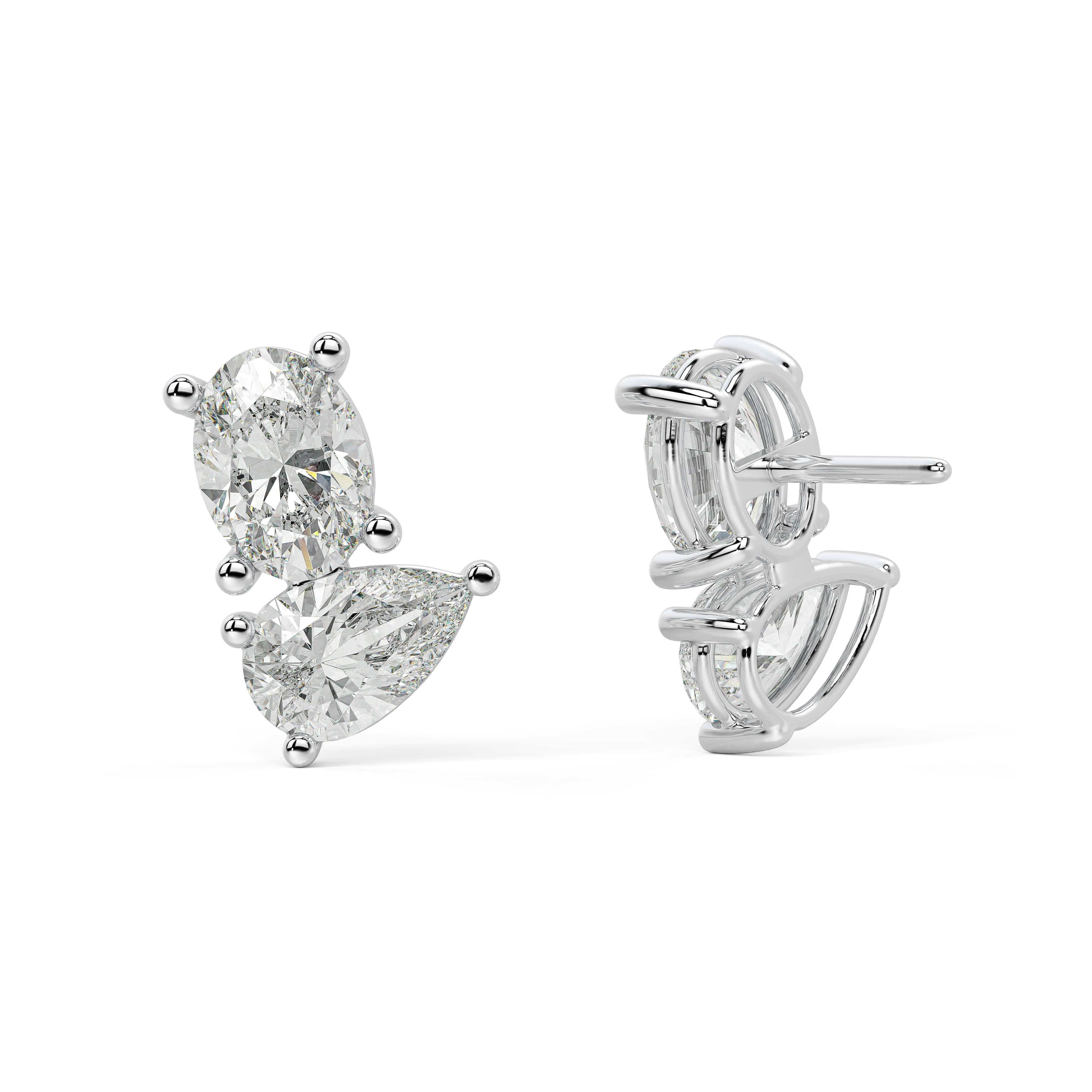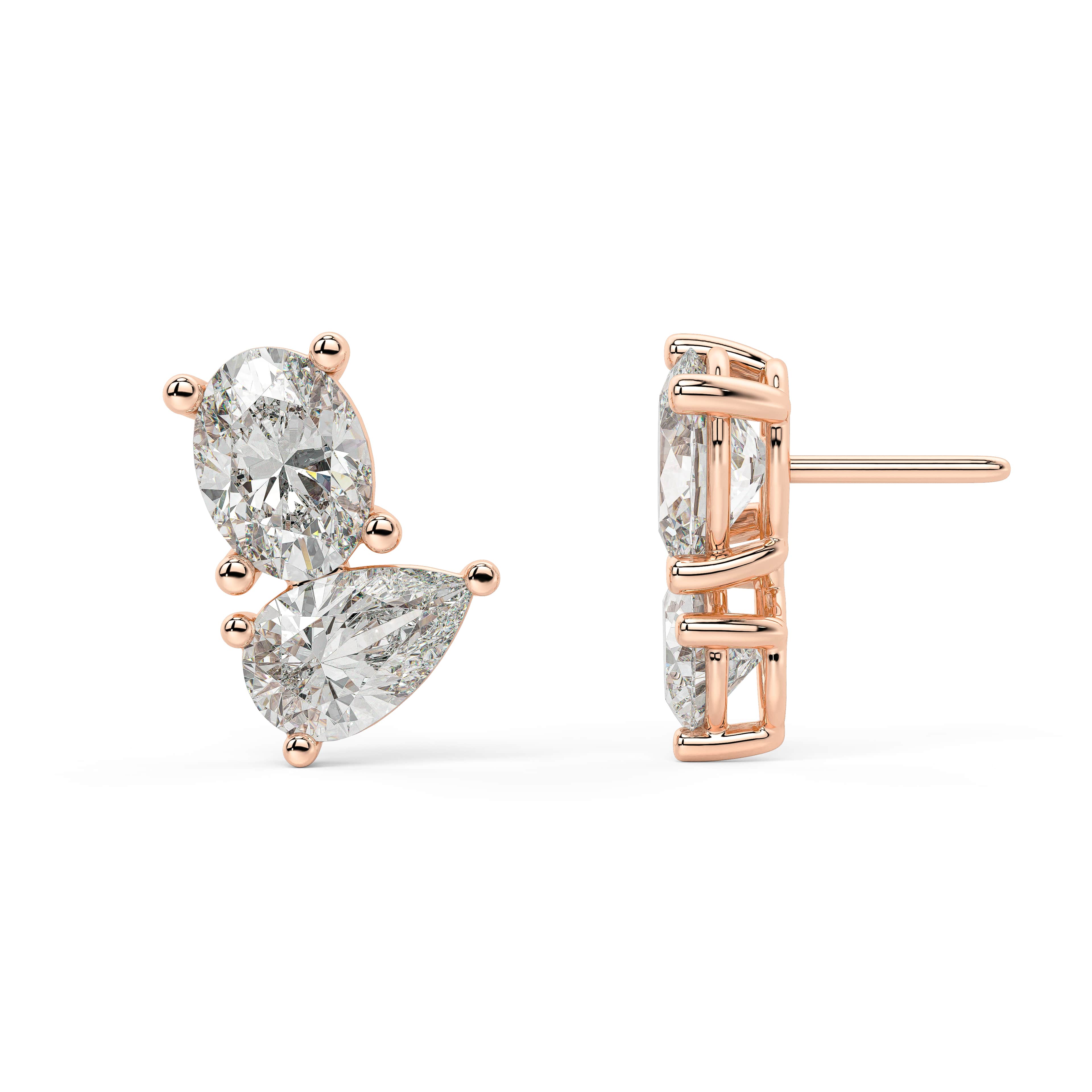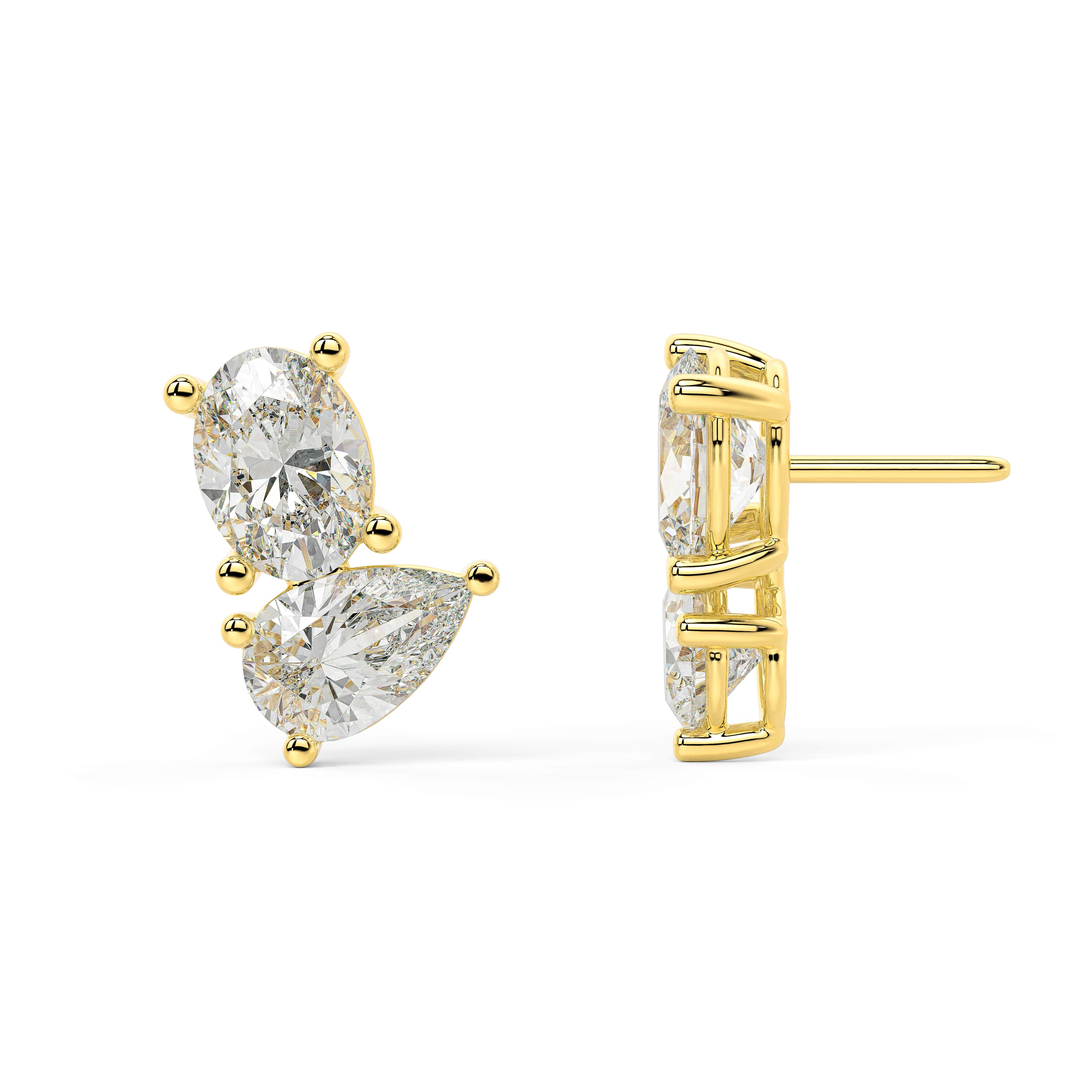 A harmony of curves and quiet radiance, the Aveline Studs bring together soft silhouettes in a refined, sculptural composition. An oval-cut lab-grown diamond rests above two pear-cut stones, forming a balanced triangular bloom that feels both graceful and intentional.