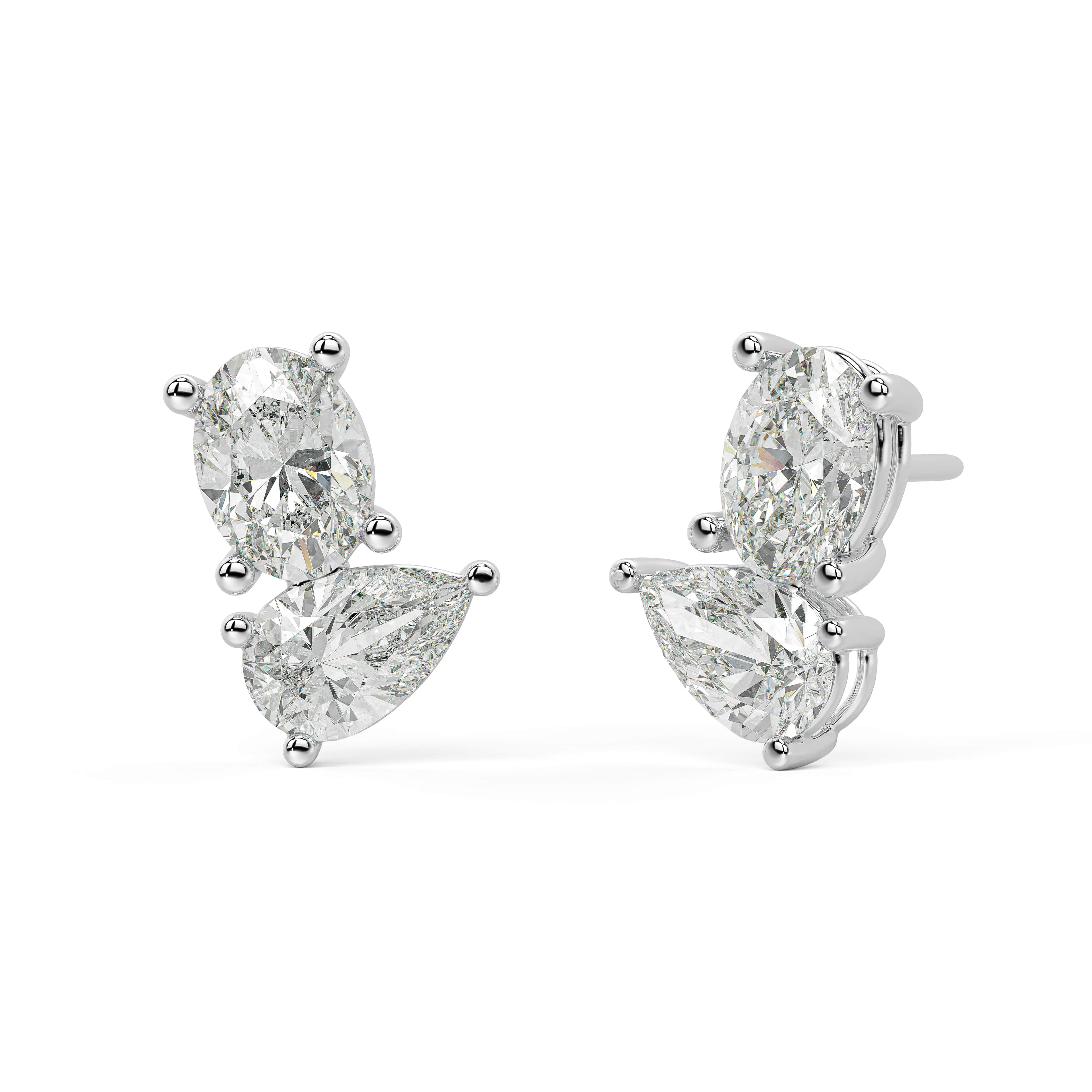 The elongated oval anchors the design with gentle symmetry, while the pear-cut diamonds add fluid movement and luminous depth. Together, the trio captures light from every angle, creating a glow that feels feminine, modern, and effortlessly elegant.