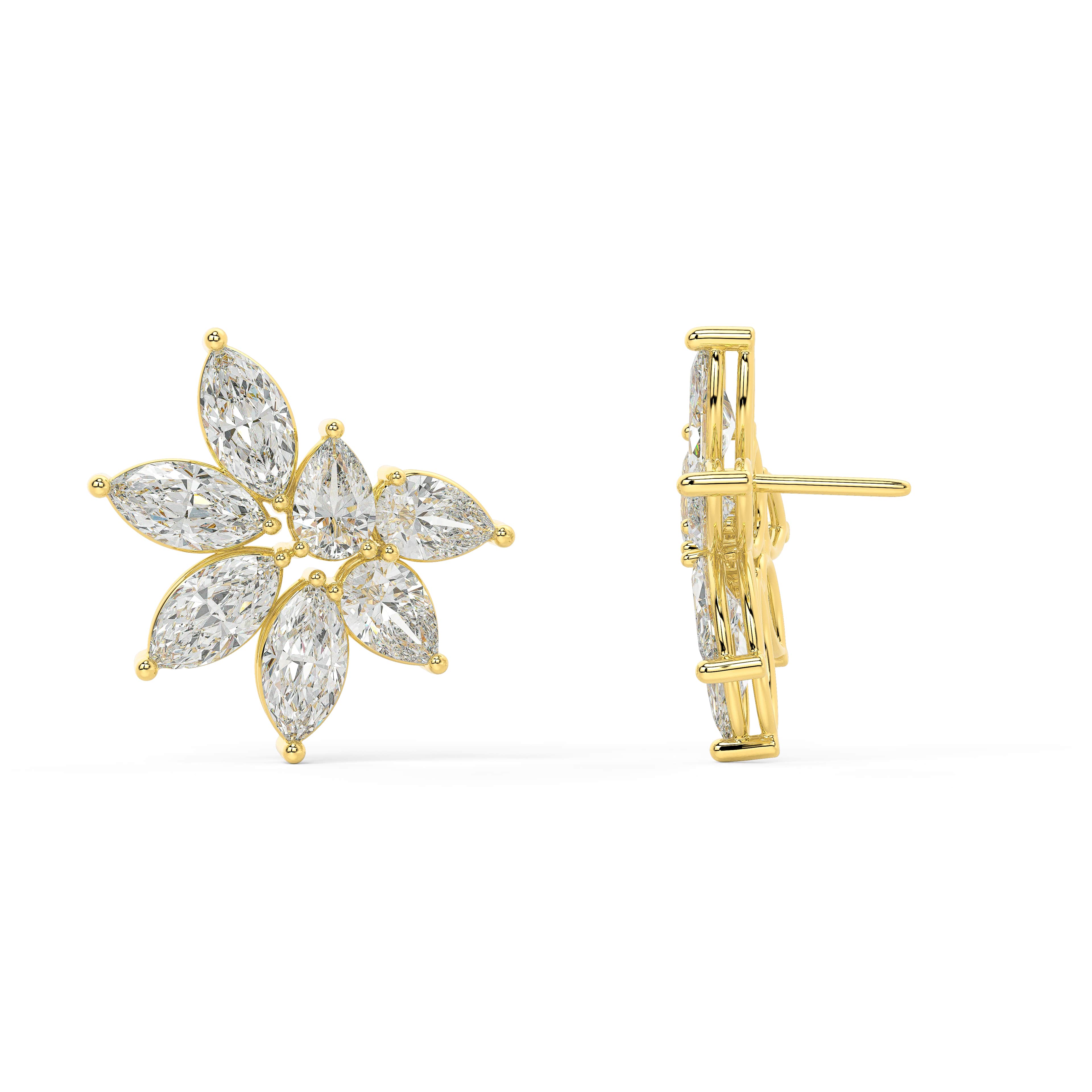 A luminous symbol of new beginnings, the Radiara Studs bloom with radiant symmetry and celestial grace. Marquise-cut lab-grown diamonds extend outward in a delicate starburst formation, each petal-like stone capturing and reflecting light in harmonious brilliance.