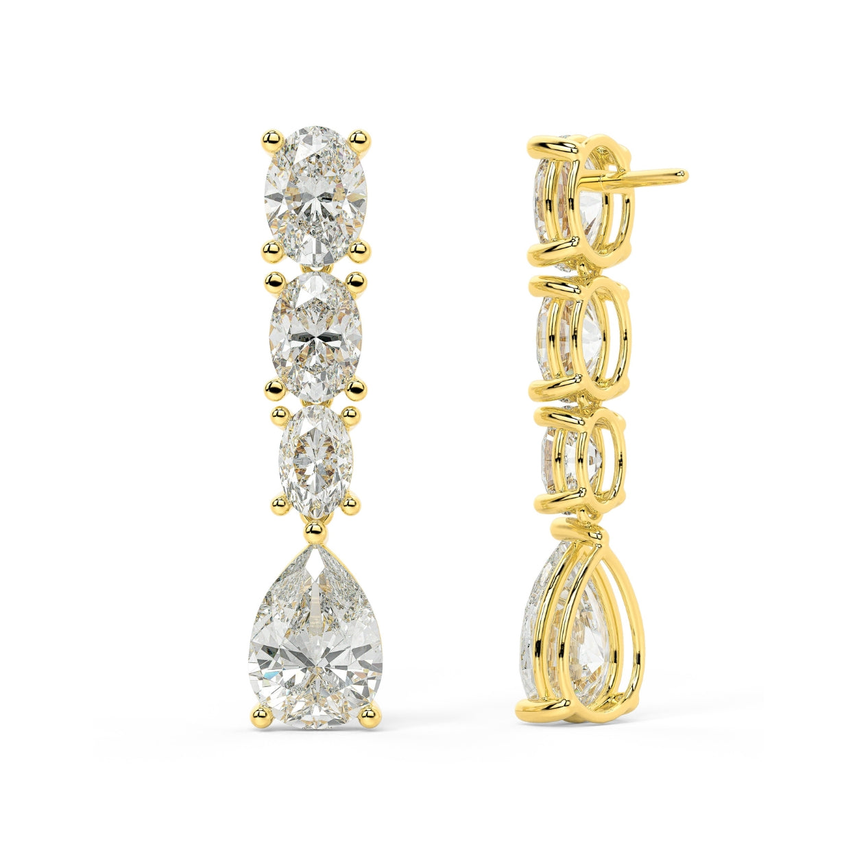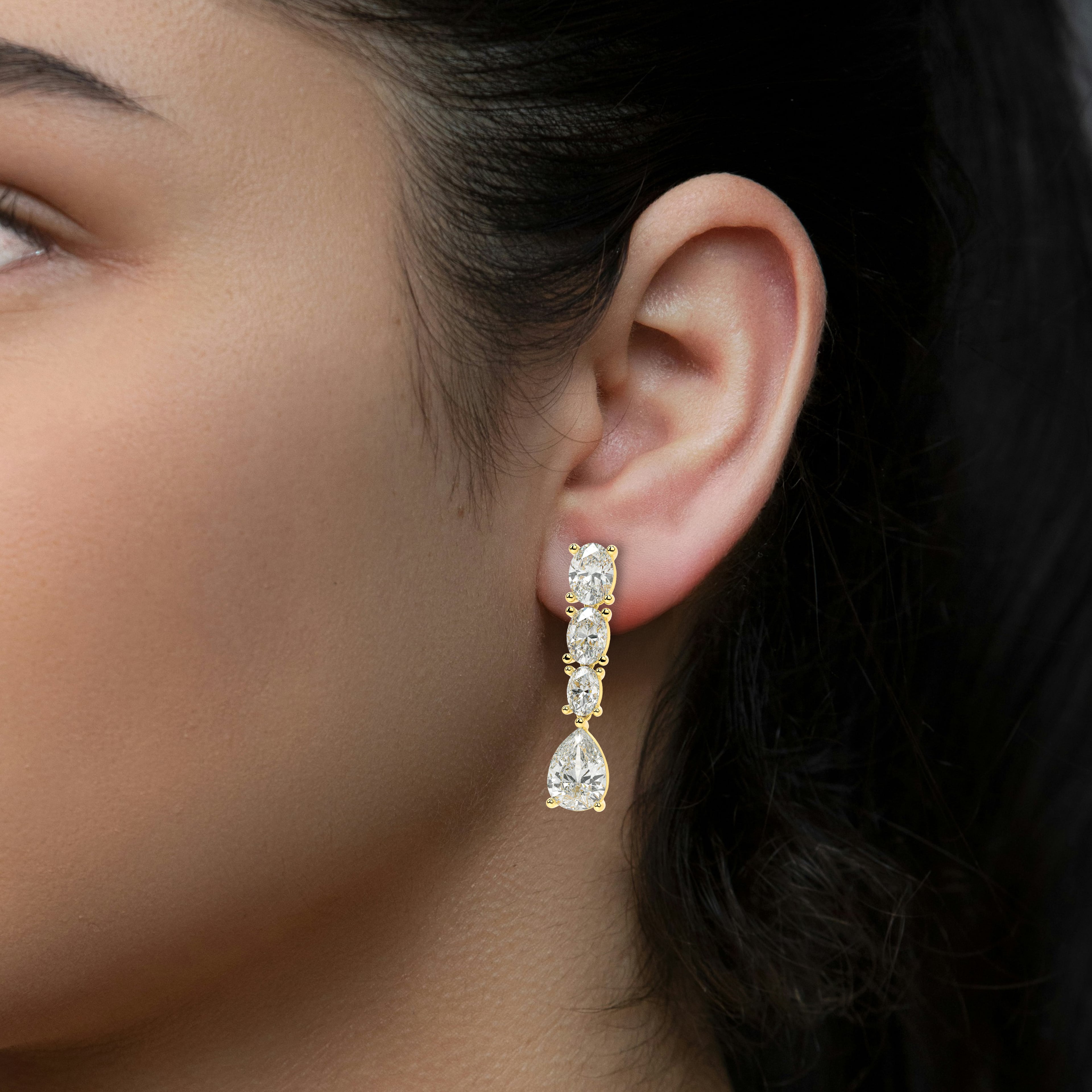 Radiant and refined, the Aureline Drops capture the artistry of light in motion. A cascading trio of oval and pear-cut lab-grown diamonds creates a silhouette of fluid brilliance — elegant, graceful, and endlessly luminous.