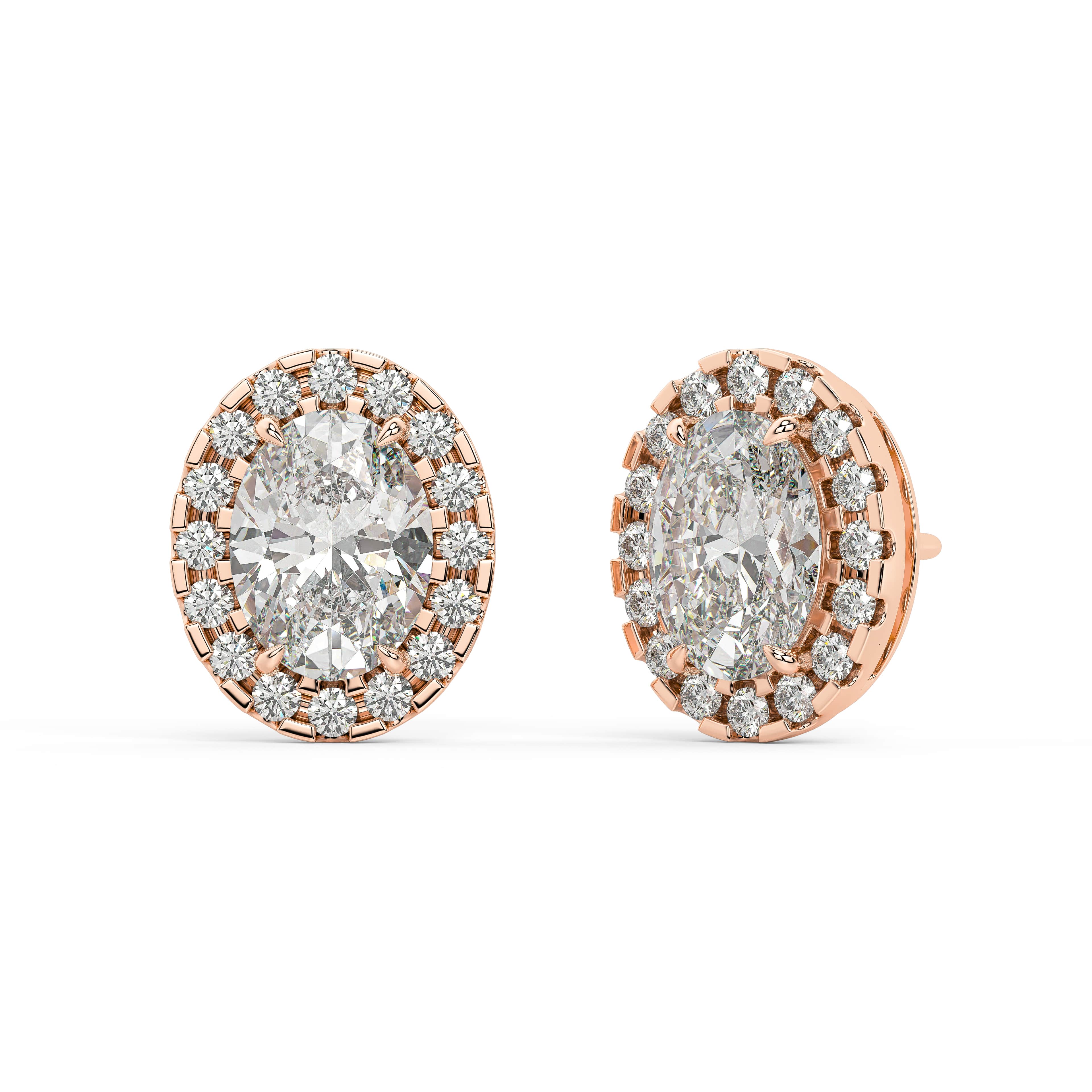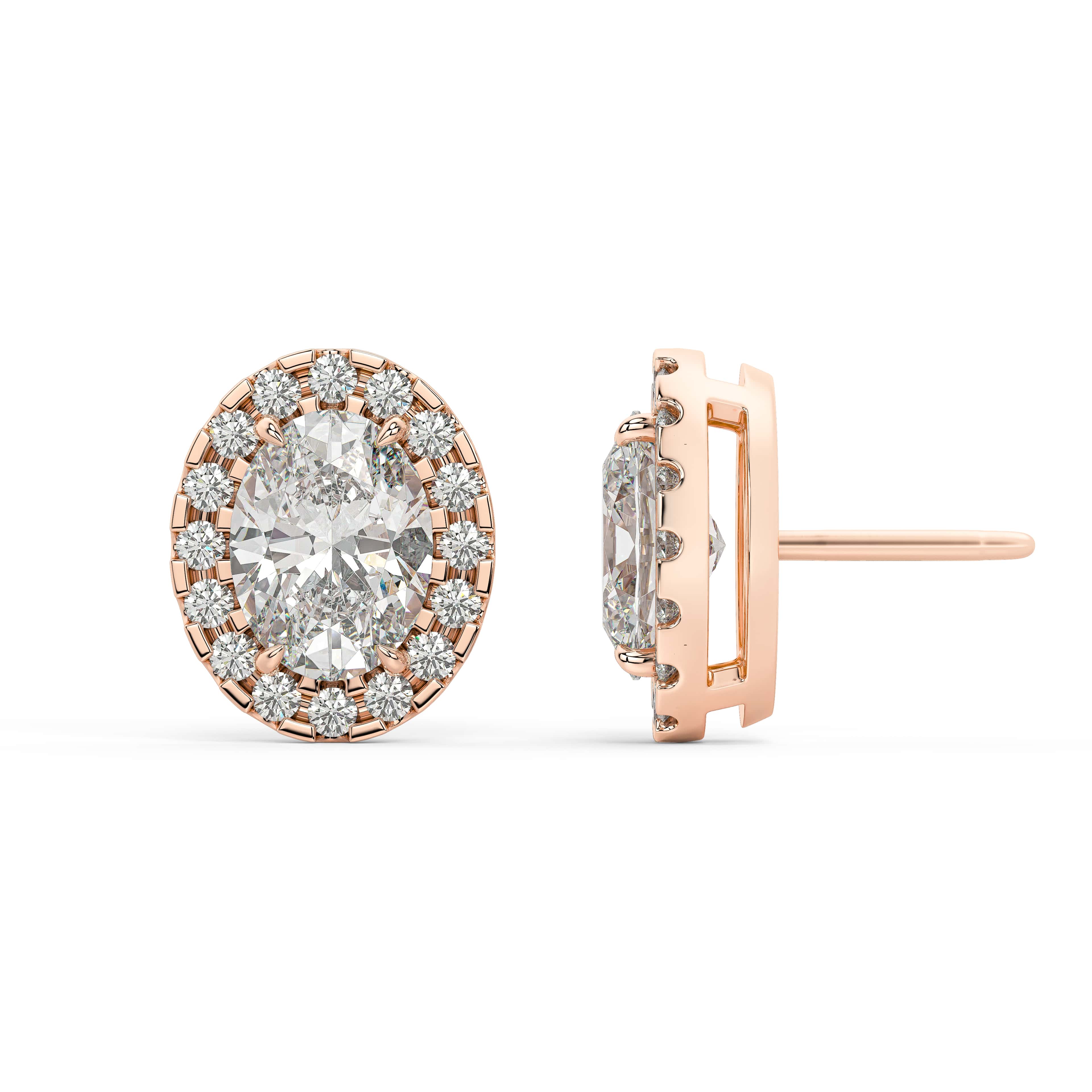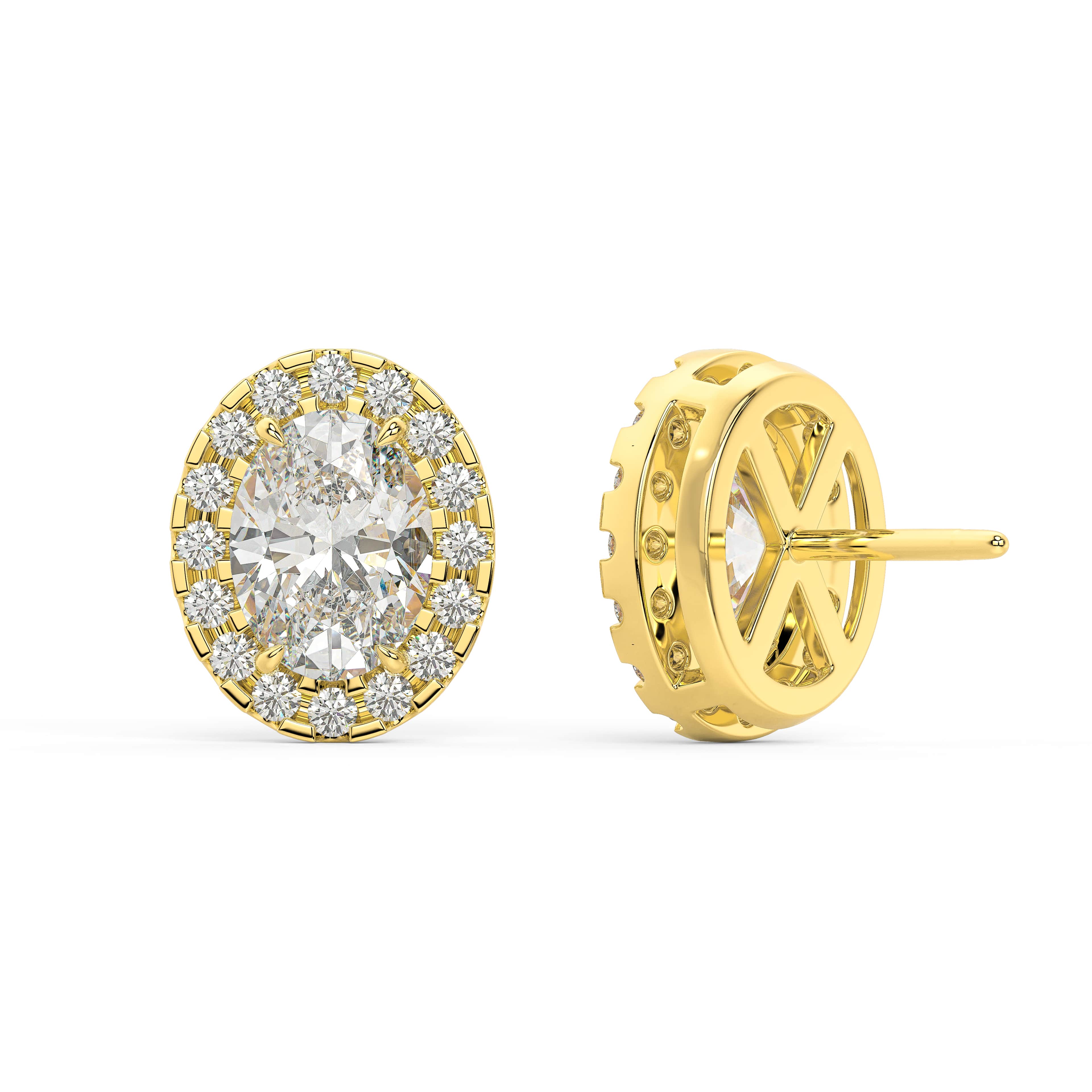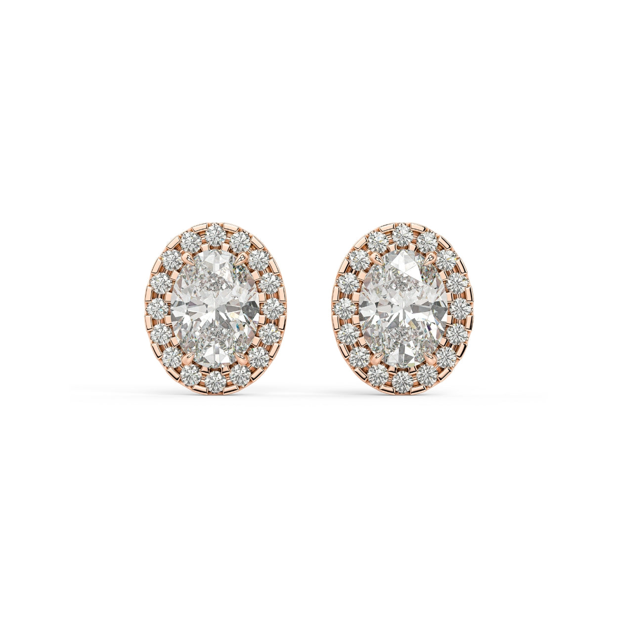 An oval of brilliance — graceful, radiant, and beautifully balanced. The Oval Halo Studs celebrate the elongated elegance of the oval cut, framed by a luminous halo that enhances its natural symmetry. At the center, soft curves and brilliant facets capture light fluidly, while the surrounding halo creates a seamless outline of sparkle.